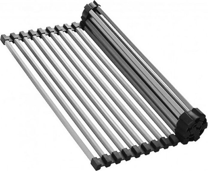 Ролл-мат для кухонной мойки Emar, материал нержавеющая сталь/чёрный силикон, цвет сатин.