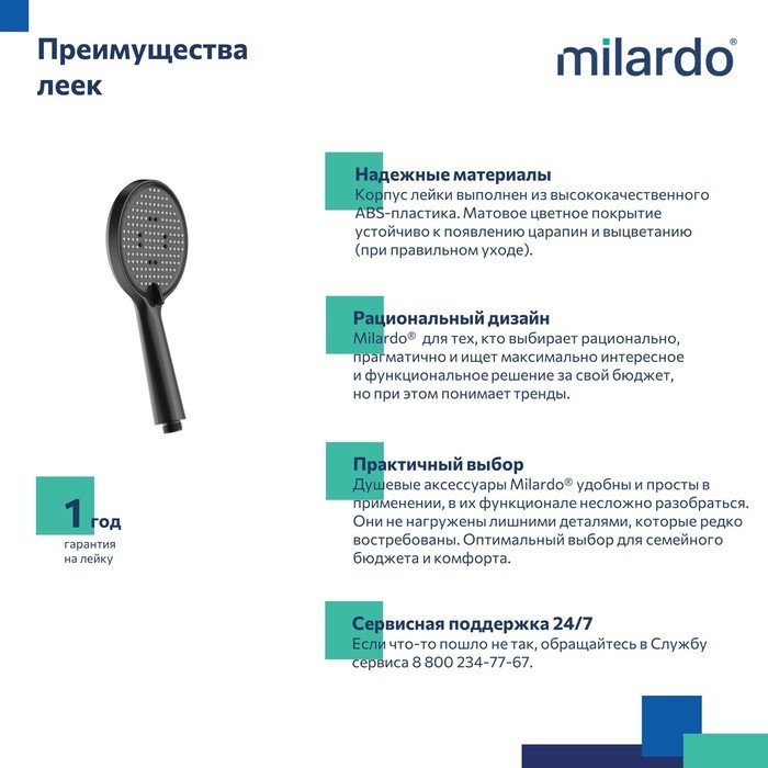 Описание ручной душ Milardo ILS3FBRM18