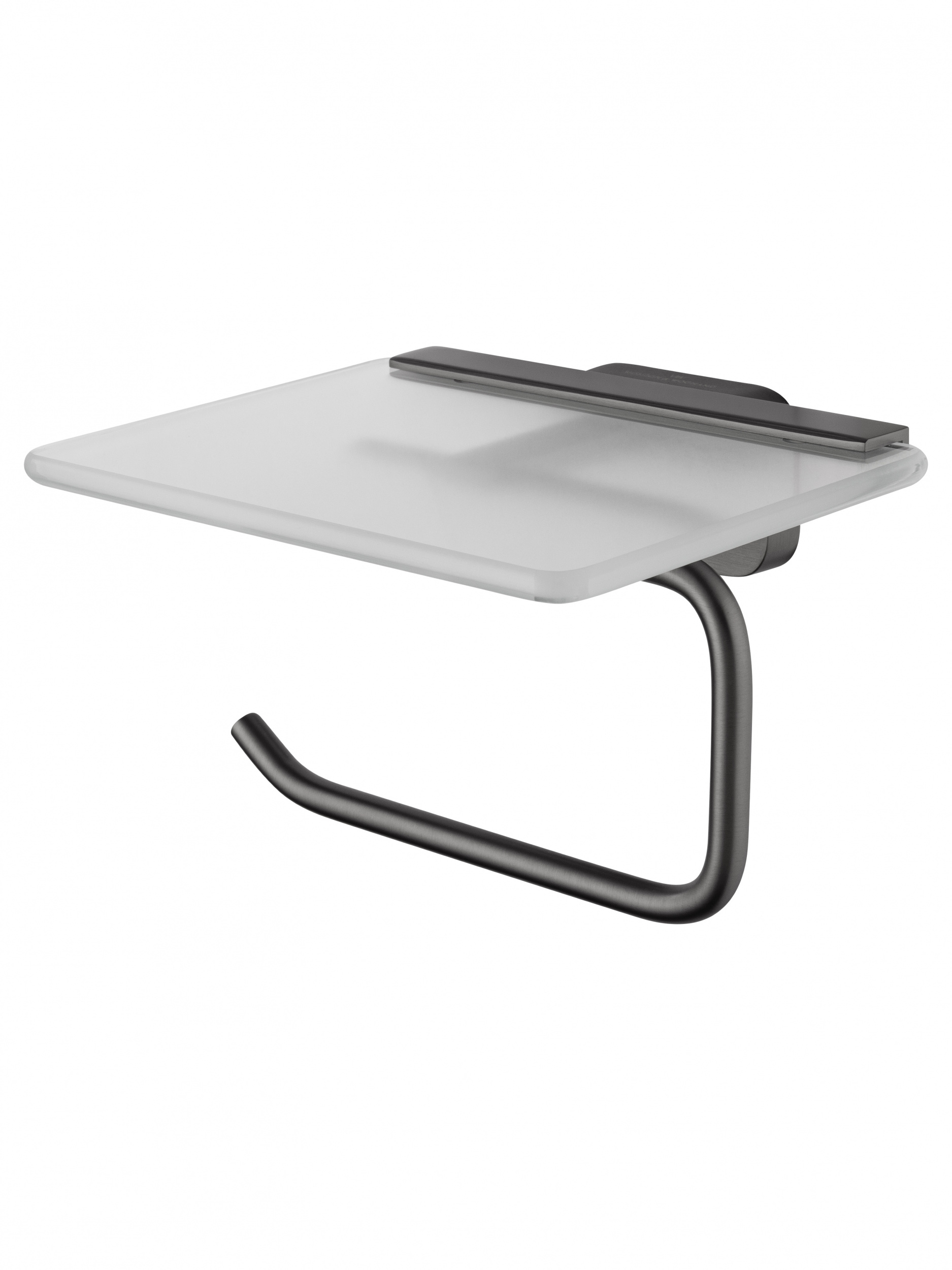 Держатель для туалетной бумаги Wonzon & Woghand Graffity WW-9326 с полкой для телефона, материал латунь/стекло, цвет тёмный графит брашированный.