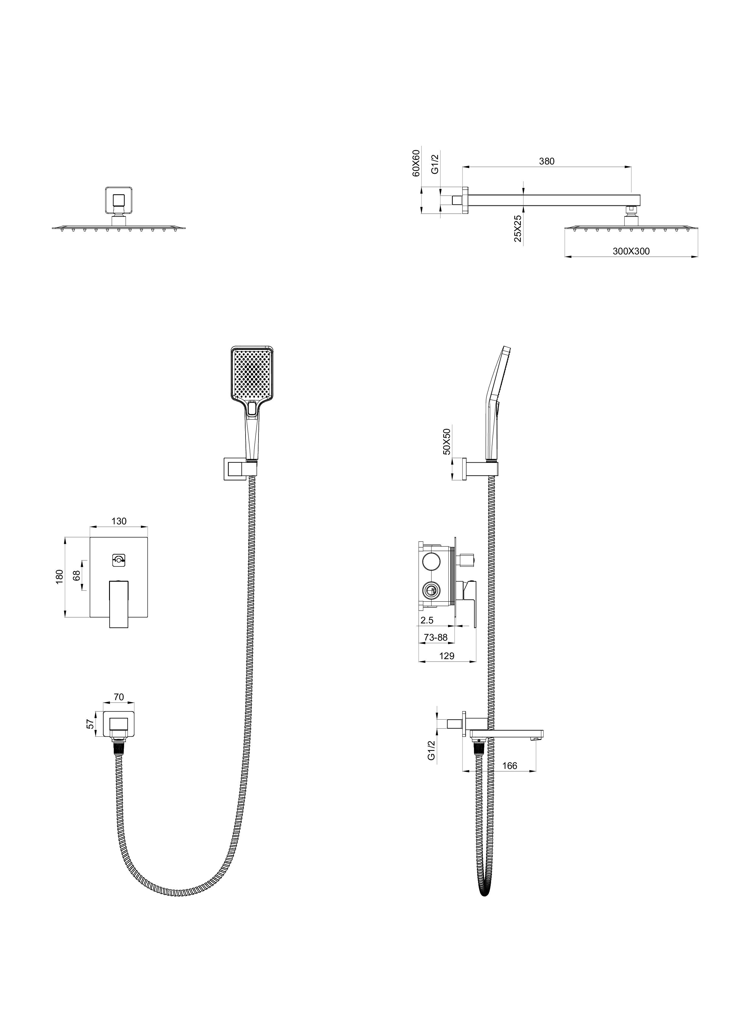 Душевая система для ванны Wonzon & Woghand Cube WW-88939016-BGM, тёмный графит брашированный