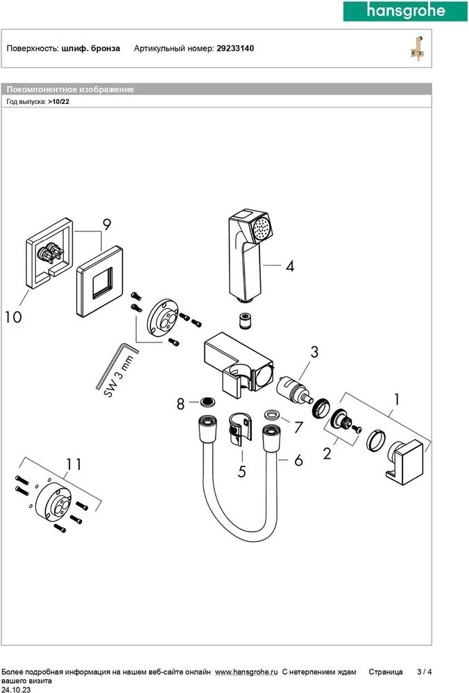 Описание гигиенический душ Hansgrohe 29233140