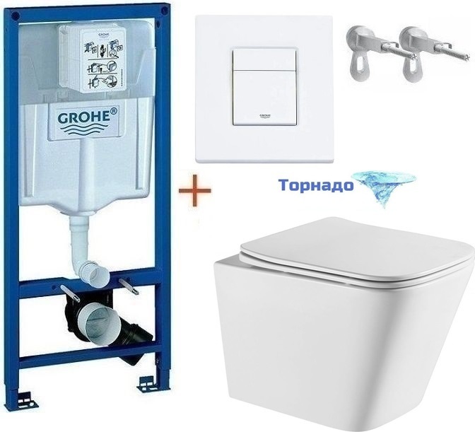 Инсталляция с подвесным унитазом комплект: Grohe Rapid SL 38772001+38732WM0 с подвесным безободковым унитазом Azario Teramo AZ-0052-UQ сиденье микролифт, крепление, кнопка смыва белый матовый