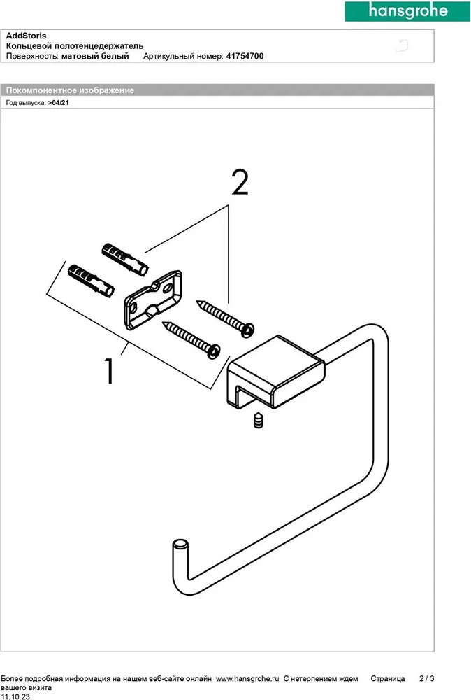 Кольцо для полотенец Hansgrohe AddStoris 41754700, цвет белый матовый