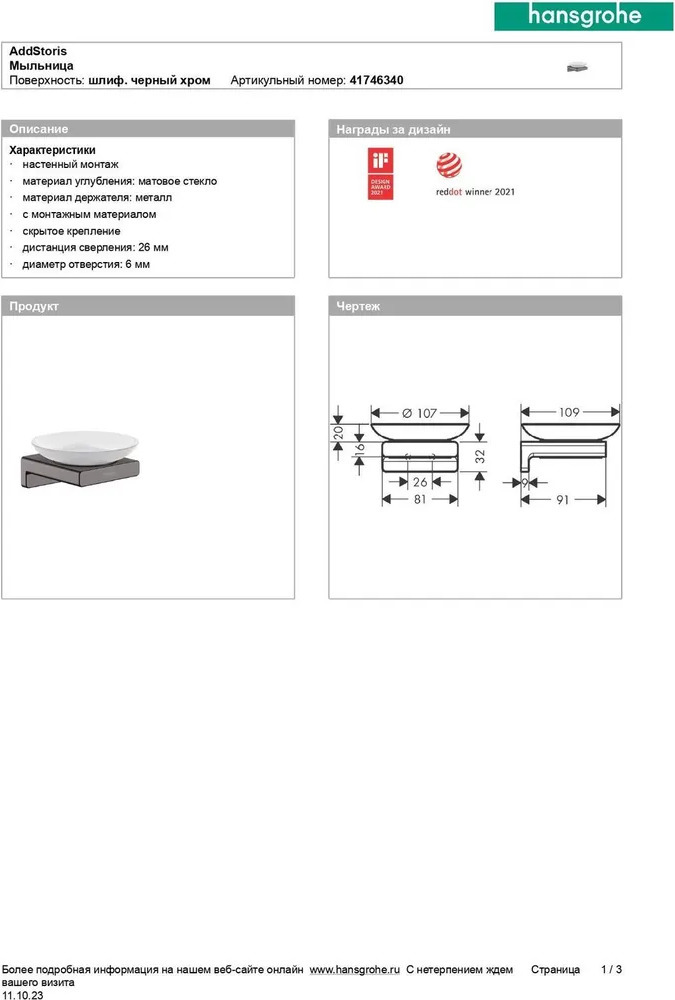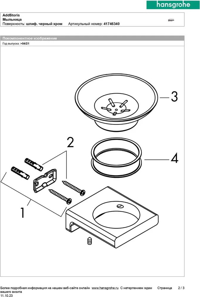 Мыльница Hansgrohe AddStoris 41746340, цвет шлифованный чёрный хром