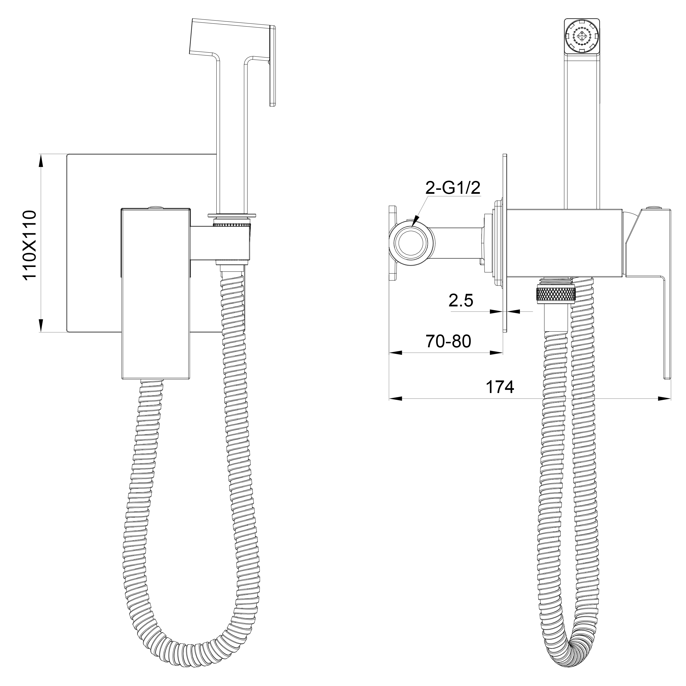 набор для гигиенического душа Wonzon & Woghand Cube WW-88829016-CR (со скрытой частью)