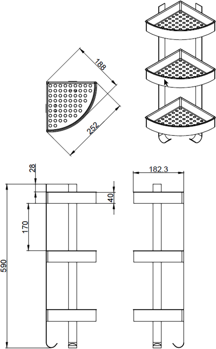 Полка угловая Azario AZ-833-3