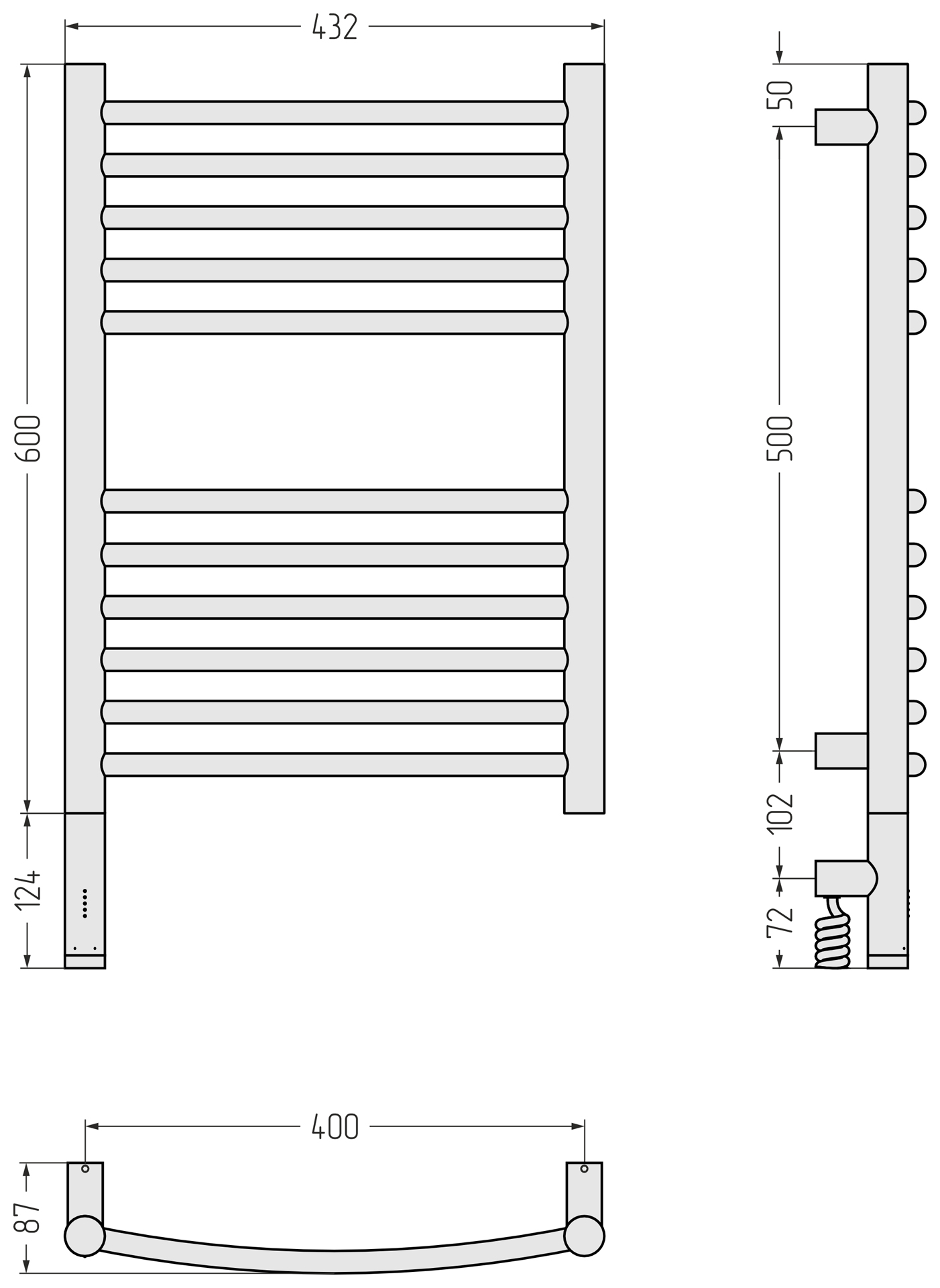 Полотенцесушитель электрический Сунержа Богема 3.1 П11 400x720 мм (выгнутая перемычка) 15-6002-6040 L, тёмный титан муар