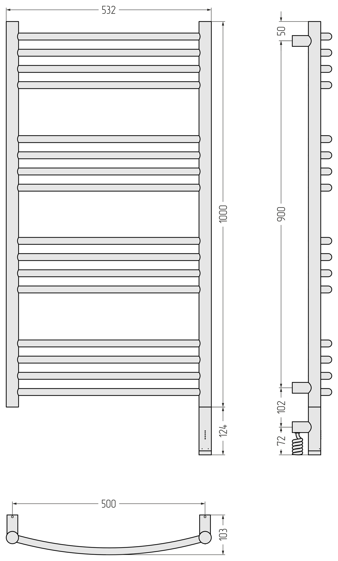 Полотенцесушитель электрический Сунержа Богема 3.1 П16 500x1120 мм (выгнутая перемычка) 00-6003-1050 R, хром - фото