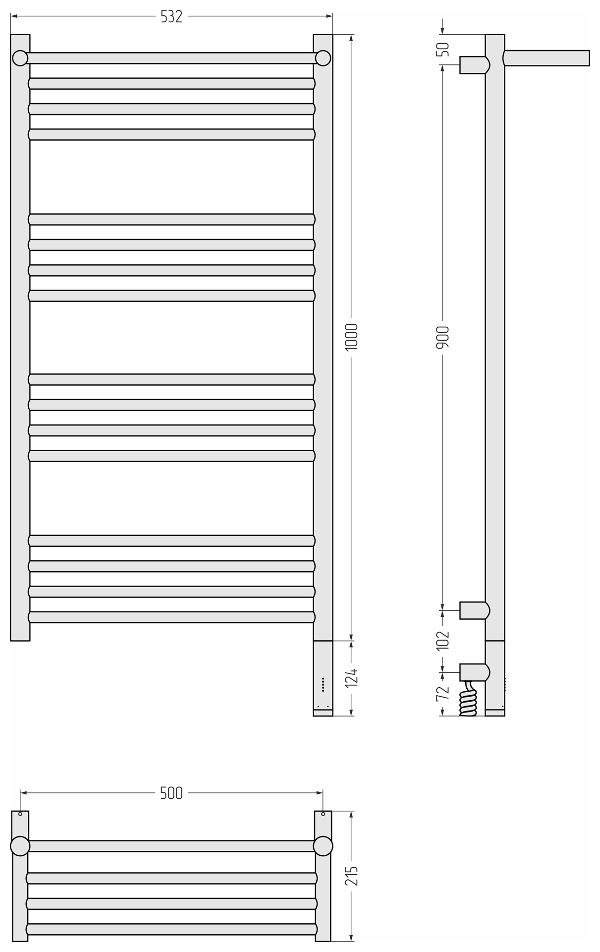 Полотенцесушитель электрический Сунержа Богема 3.1 с полкой П16 500x1120 мм 071-6007-1050 R, сатин