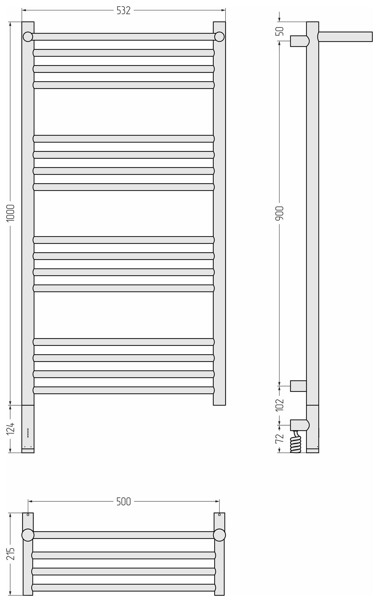 Полотенцесушитель электрический Сунержа Богема 3.1 с полкой П16 500x1120 мм 15-6006-1050 L, тёмный титан муар