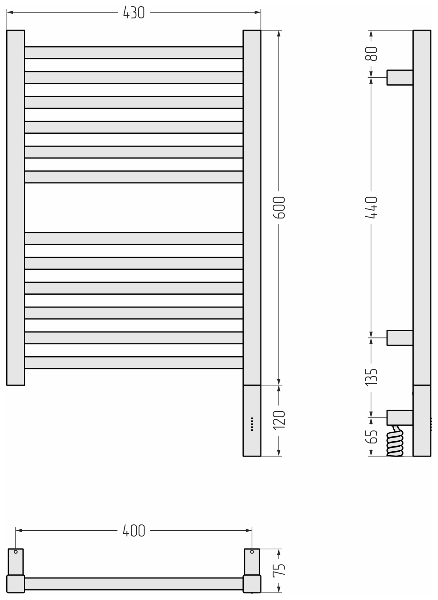 Полотенцесушитель электрический Сунержа Модус 3.1 П12 400x720 мм 051-5901-6040 R, состаренная латунь