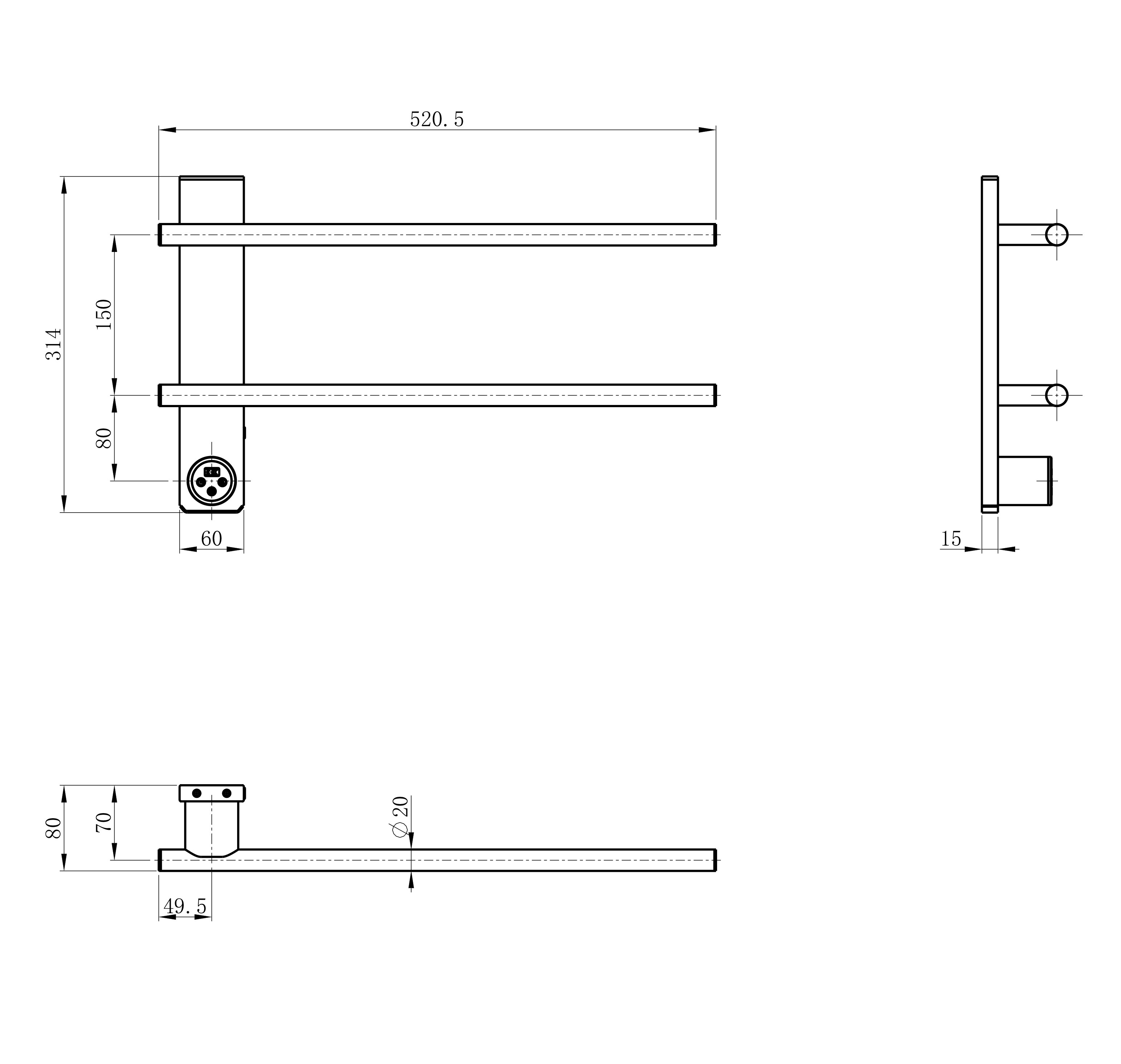 Полотенцесушитель электрический Wonzon & Woghand Nürnberg П2 310x520 мм WW-AL342-MB, чёрный