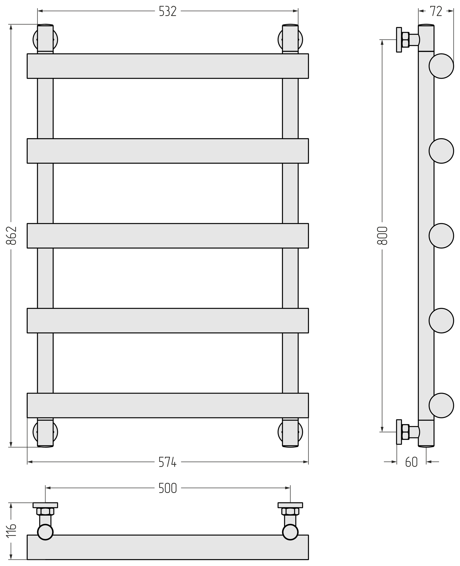 Полотенцесушитель водяной Сунержа Атлант П5 500x860 мм 022-0226-8050, шампань матовый