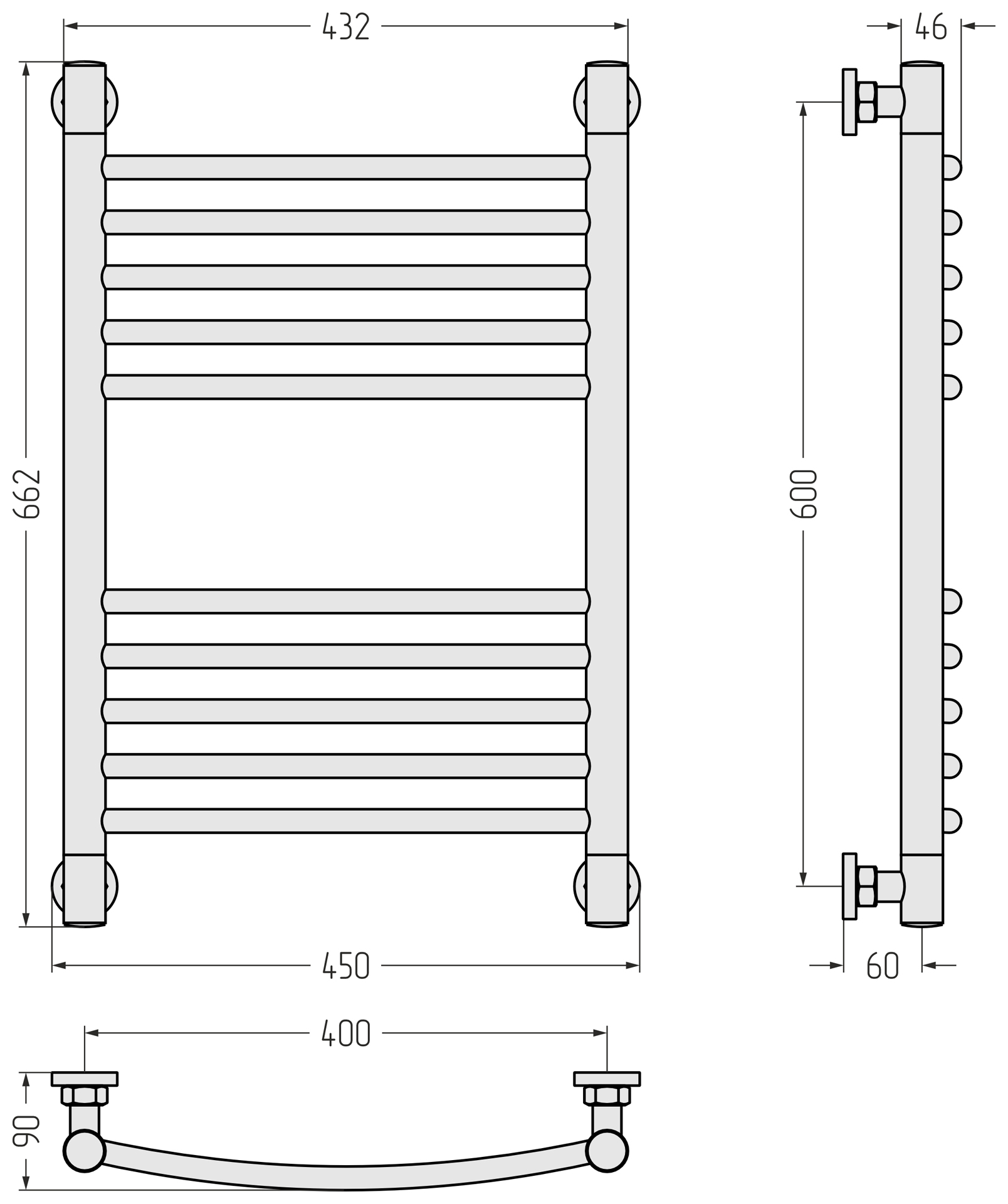 Полотенцесушитель водяной Сунержа Богема+ П10 400x660 мм (выгнутая перемычка) 05-0221-6040, состаренная бронза