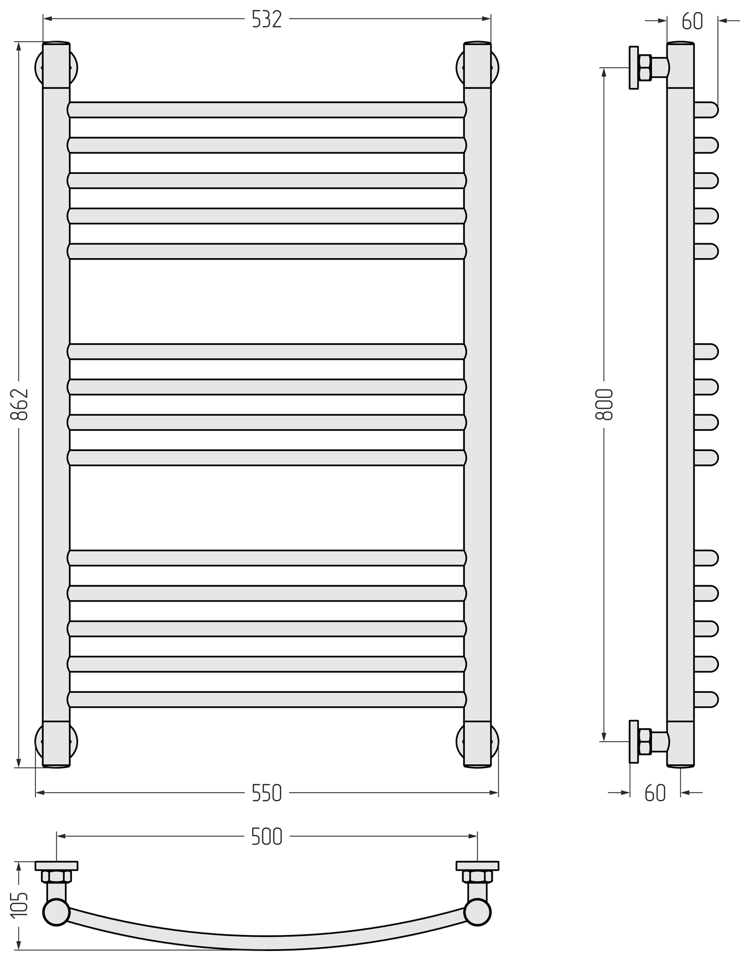 Полотенцесушитель водяной Сунержа Богема+ П14 500x860 мм (выгнутая перемычка) 032-0221-8050, золото матовое