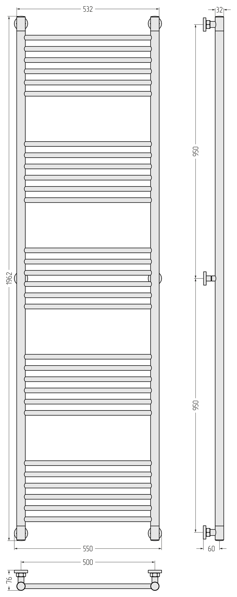 Полотенцесушитель водяной Сунержа Богема+ П30 500x1960 мм (прямая перемычка) 05-0220-1950, состаренная бронза