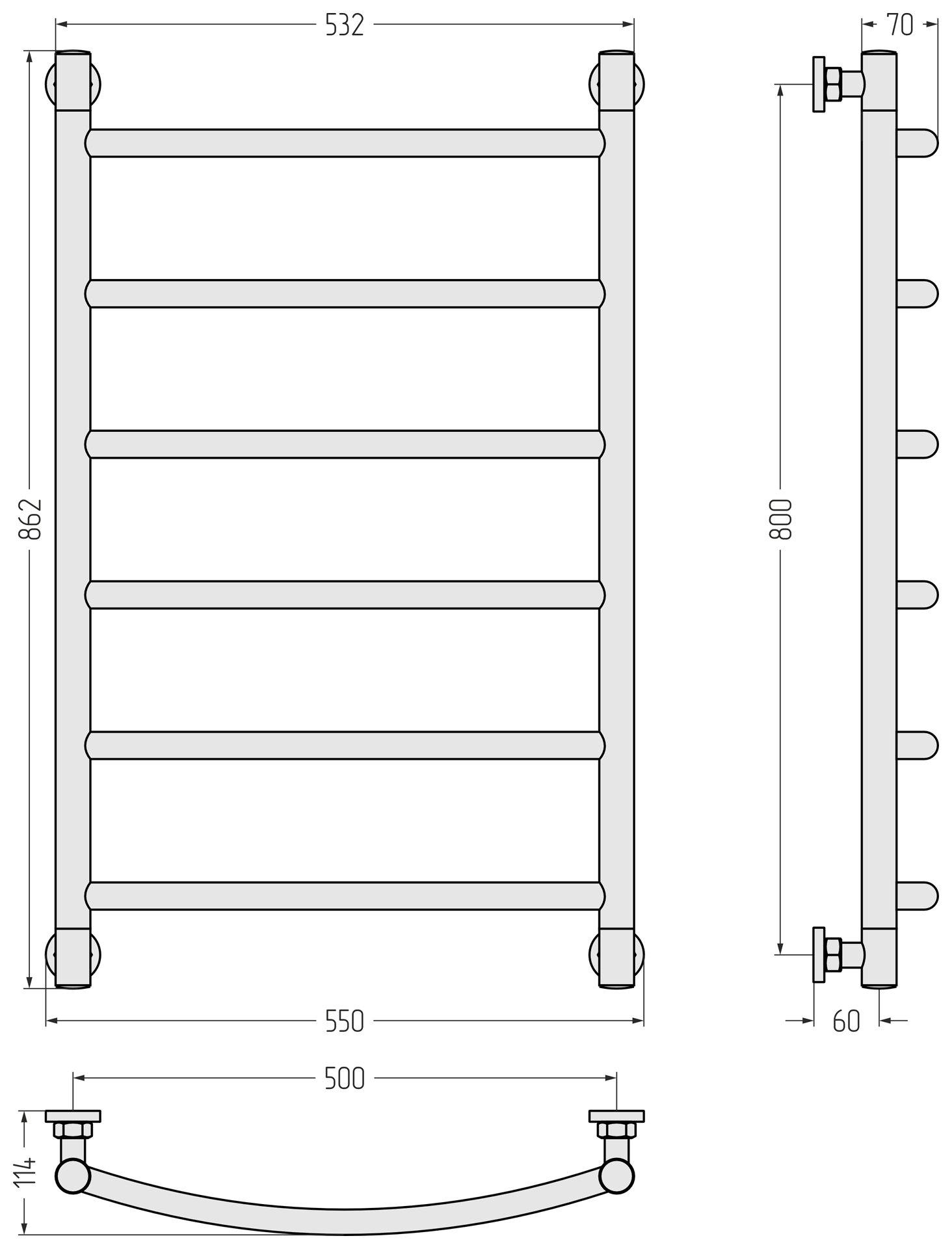 Полотенцесушитель водяной Сунержа Галант+ П6 500x860 мм 15-0200-8050, тёмный титан муар