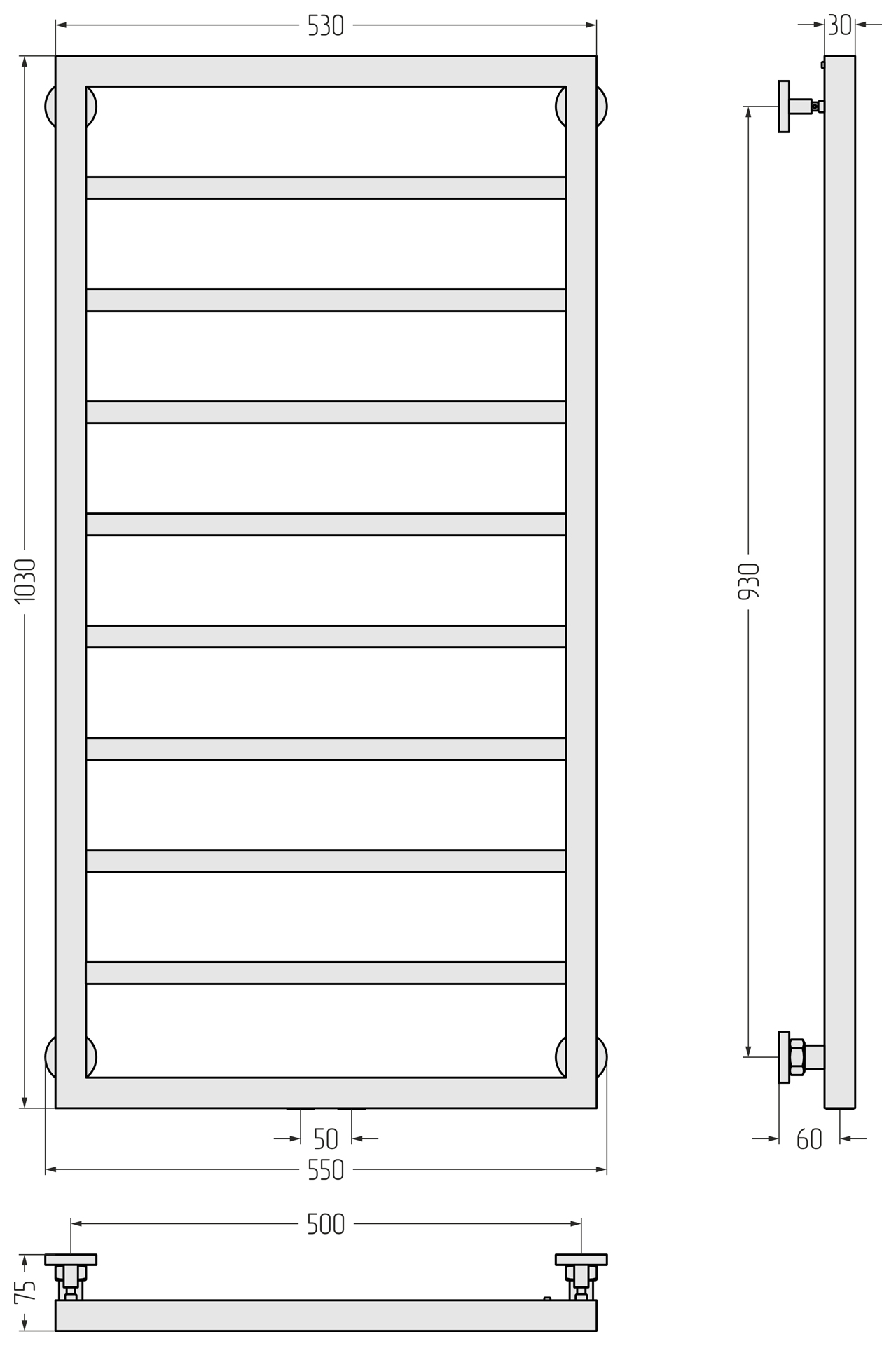 Полотенцесушитель водяной Сунержа Канцлер П8 500x1030 мм 03-0254-1050, золото