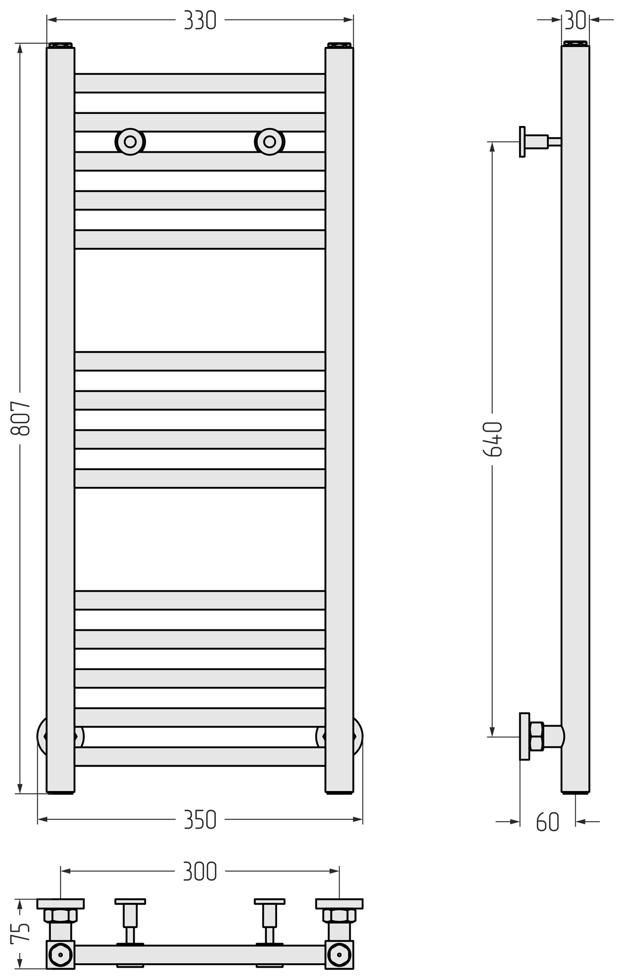 Полотенцесушитель водяной Сунержа Модус П14 300x800 мм 31-0250-8030, чёрный матовый
