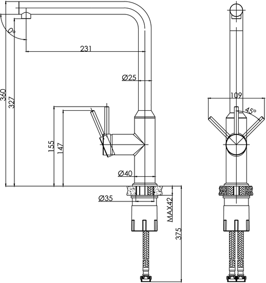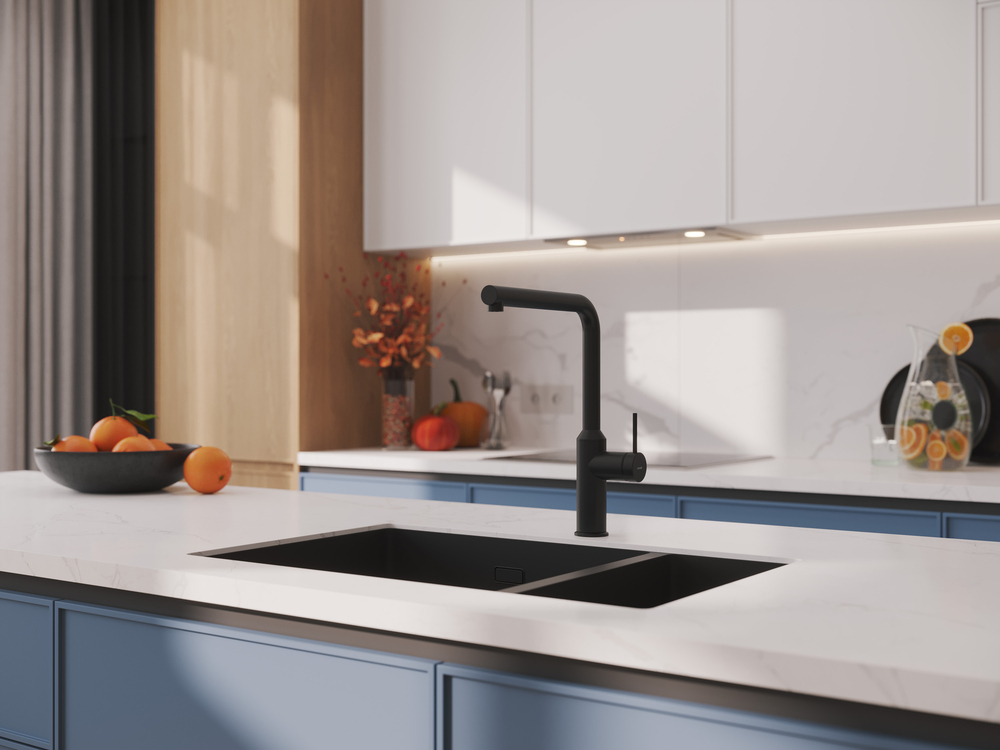 Смеситель для кухни Cersanit Flavis A68240, чёрный