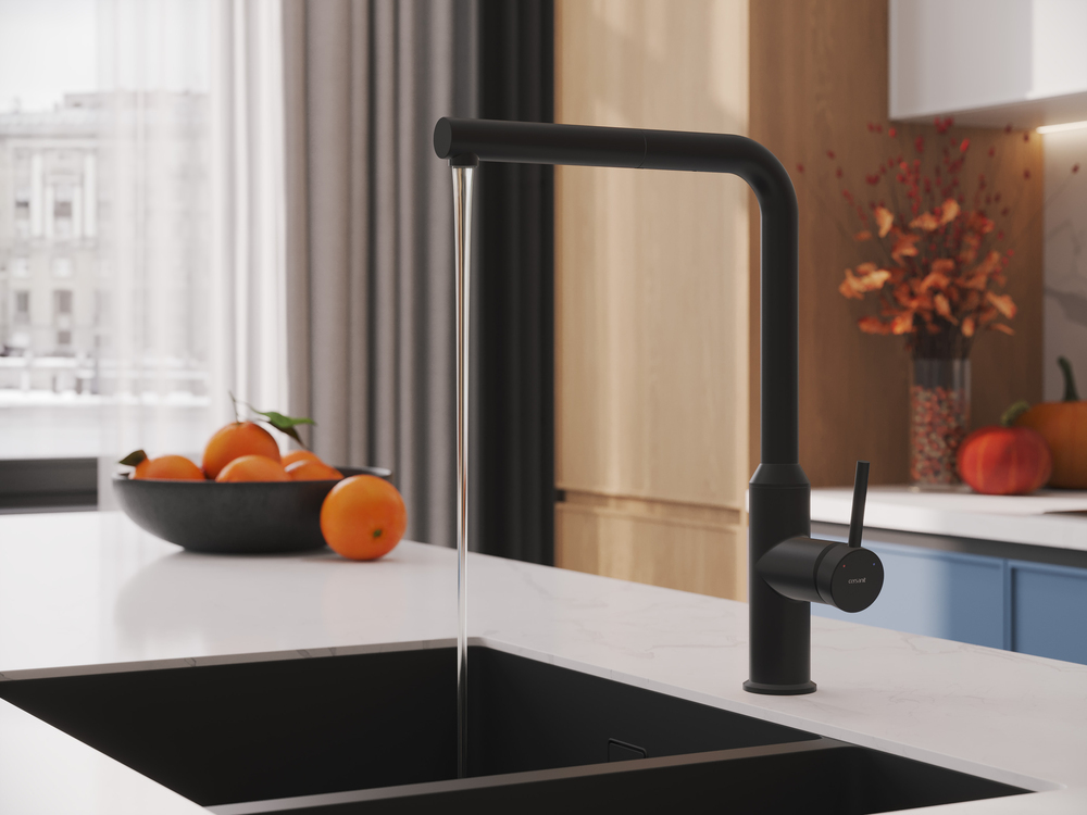 Смеситель для кухни Cersanit Flavis A68247, чёрный
