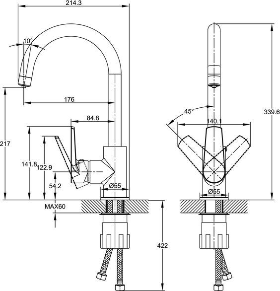 Описание смеситель для кухни,смеситель для кухни с подключением фильтра Cersanit A64839