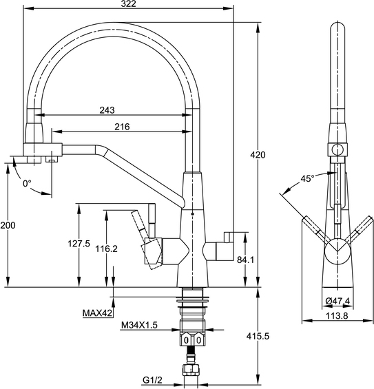 Описание смеситель для кухни,смеситель для кухни с подключением фильтра,смеситель для кухни с гибким изливом Cersanit A68217