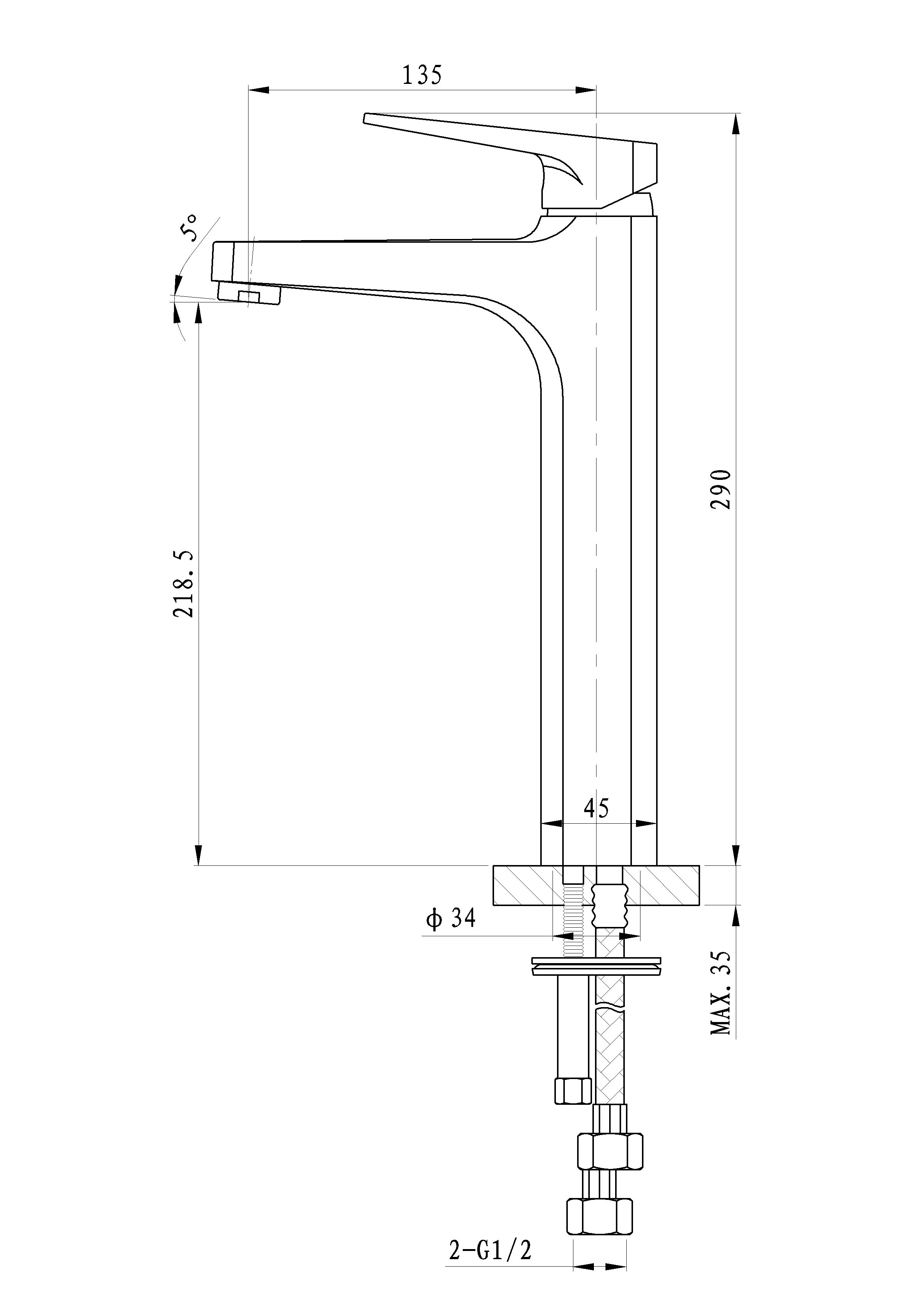 Описание смеситель для раковины высокий Wonzon & Woghand WW-081102-CR