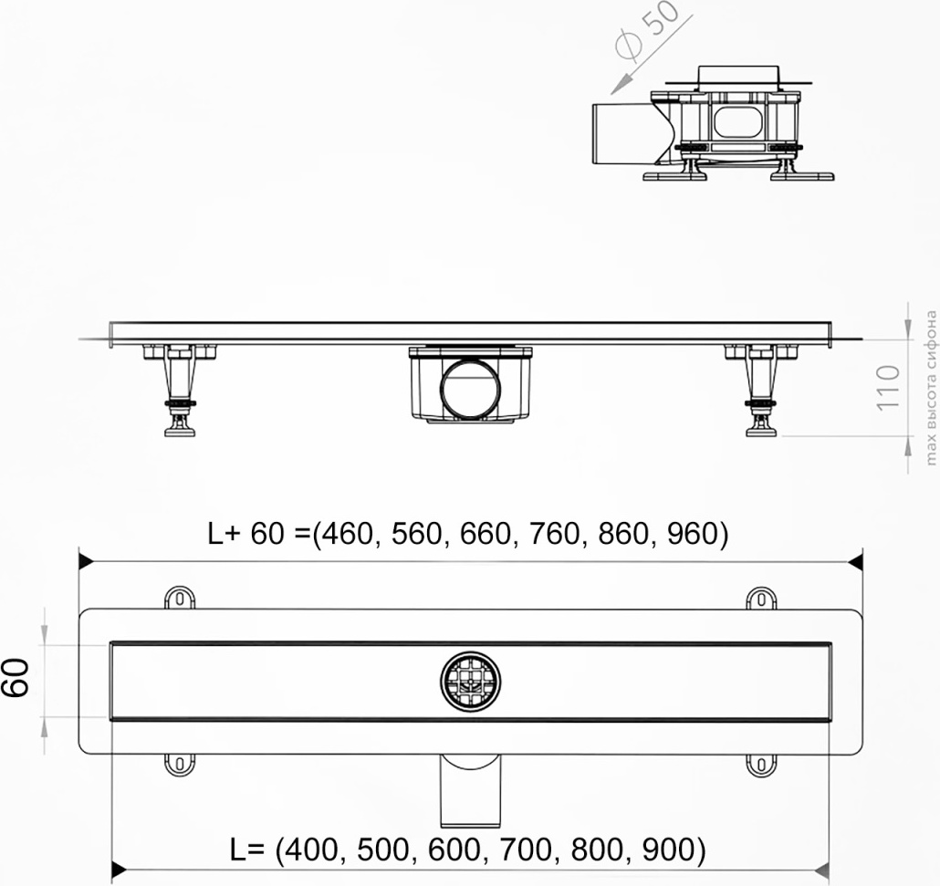 Описание трап линейный Azario AZPP01-60 Ceramic
