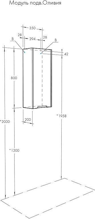 - Габариты (ШхВхГ): 350х800х200 мм