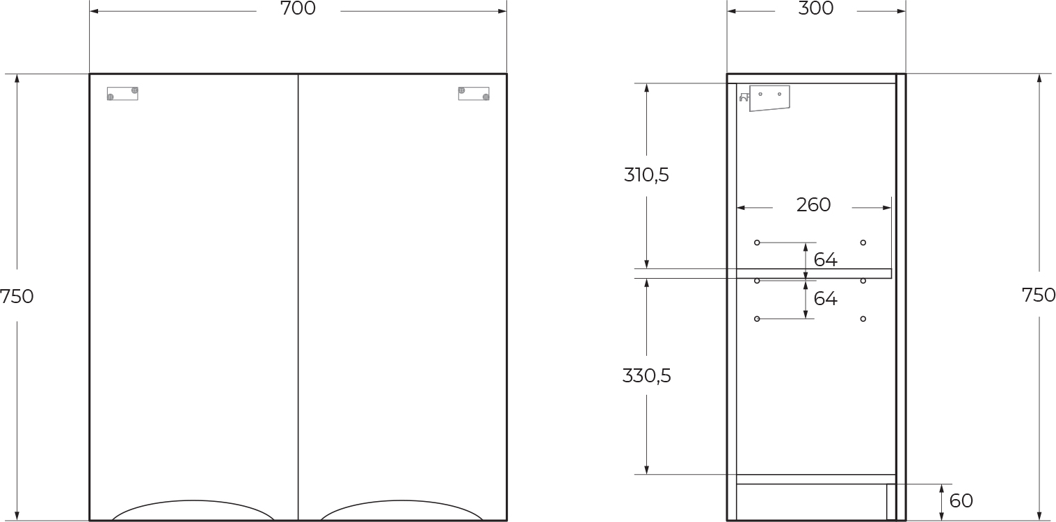 Характеристики шкаф навесной BelBagno (FLY-MARINO-700-2A-SC-RW-P)