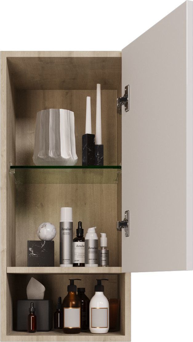 Шкаф подвесной Dreja Perfecto 35 см 99.0815, 1 дверца, 1 стеклянная полка, цвет дуб эврика/белый глянец.