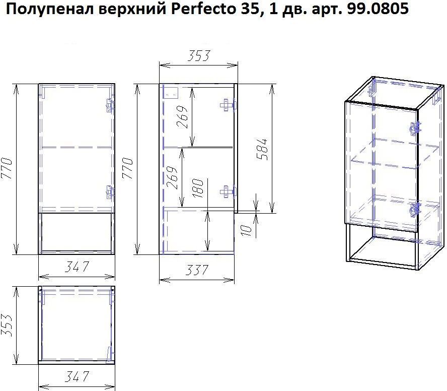 Шкаф подвесной Dreja Perfecto 35 см 99.0815, дуб эврика/белый глянец