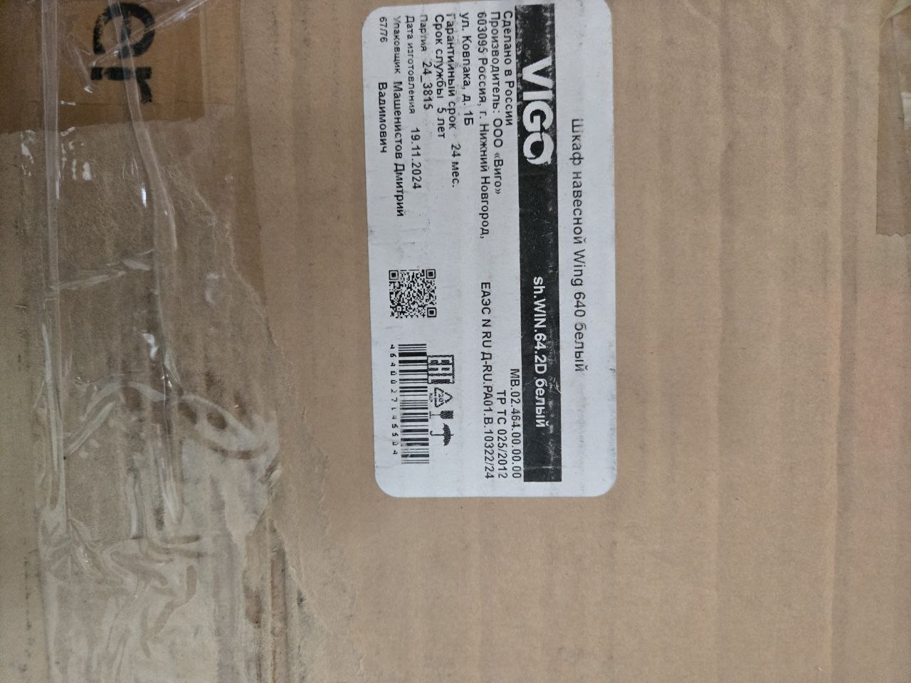 Шкаф подвесной Vigo Wing 64 см, цвет белый. Имеются сколы на полочках и дверце шкафа. См. фото.