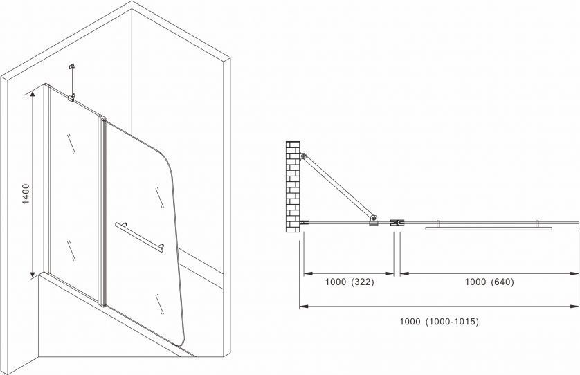 Шторка для ванны Abber Ewiges Wasser AG50100B 1000х1400 мм, профиль - черный, стекло - прозрачное, 6 мм.