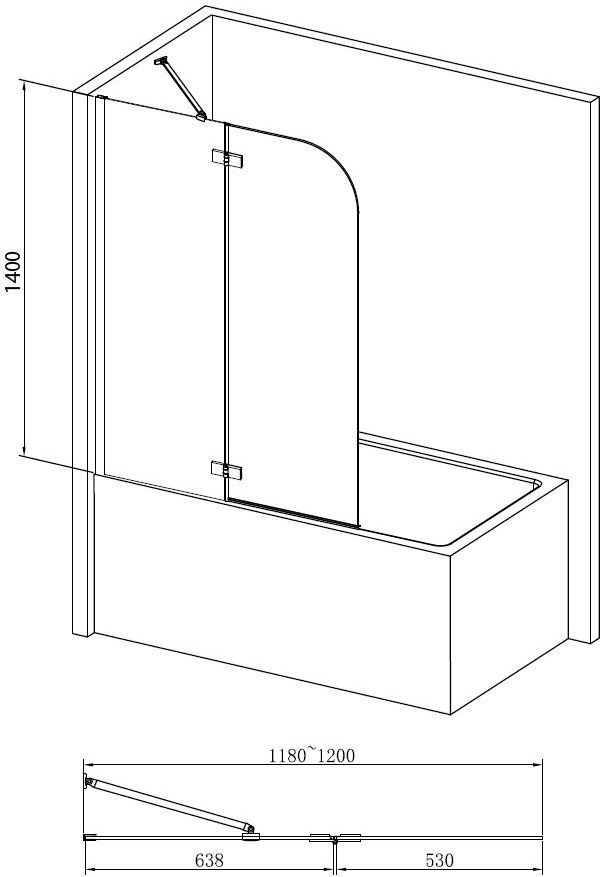 Шторка для ванны Abber Ewiges Wasser AG51120 1200х1400 мм, профиль - хром, стекло - прозрачное, 6 мм.