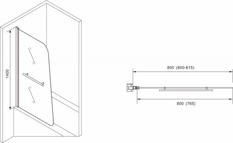 Шторка для ванны Abber Ewiges Wasser AG50080B 800х1400 мм, профиль - черный, стекло - прозрачное, 6 мм.