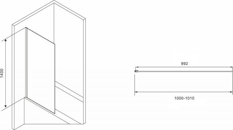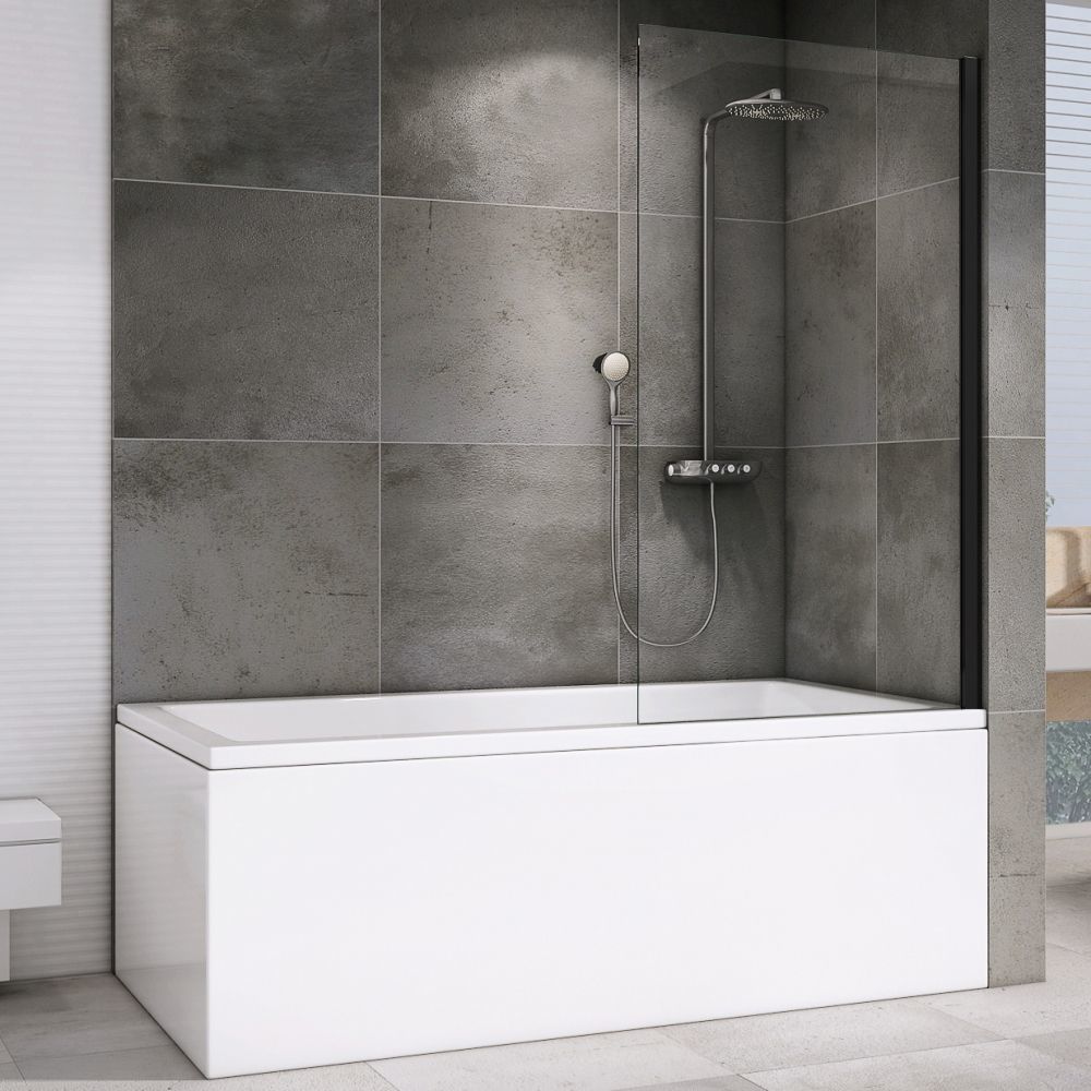 Шторка для ванны Abber Immer Offen AG71100B 1000х1400 мм, профиль - черный, стекло - прозрачное, 6 мм.