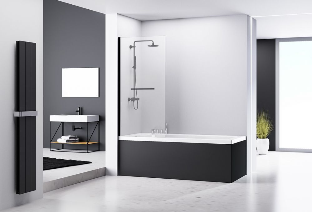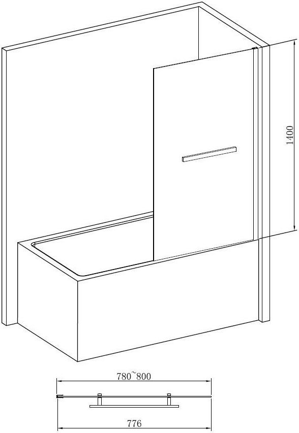 Шторка для ванны Abber Immer Offen AG70080B 800х1400 мм, профиль - черный, стекло - прозрачное, 6 мм.