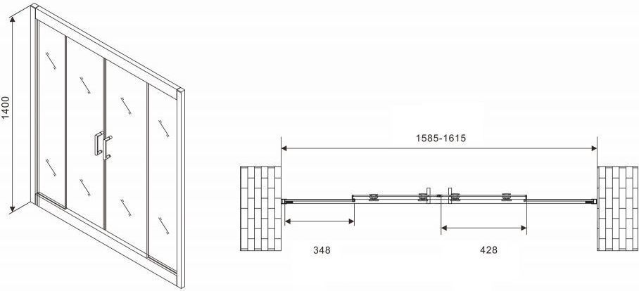 Шторка для ванны Abber Schwarzer Diamant, размер 1600х1400 мм, профиль хром, стекло прозрачное 6 мм.