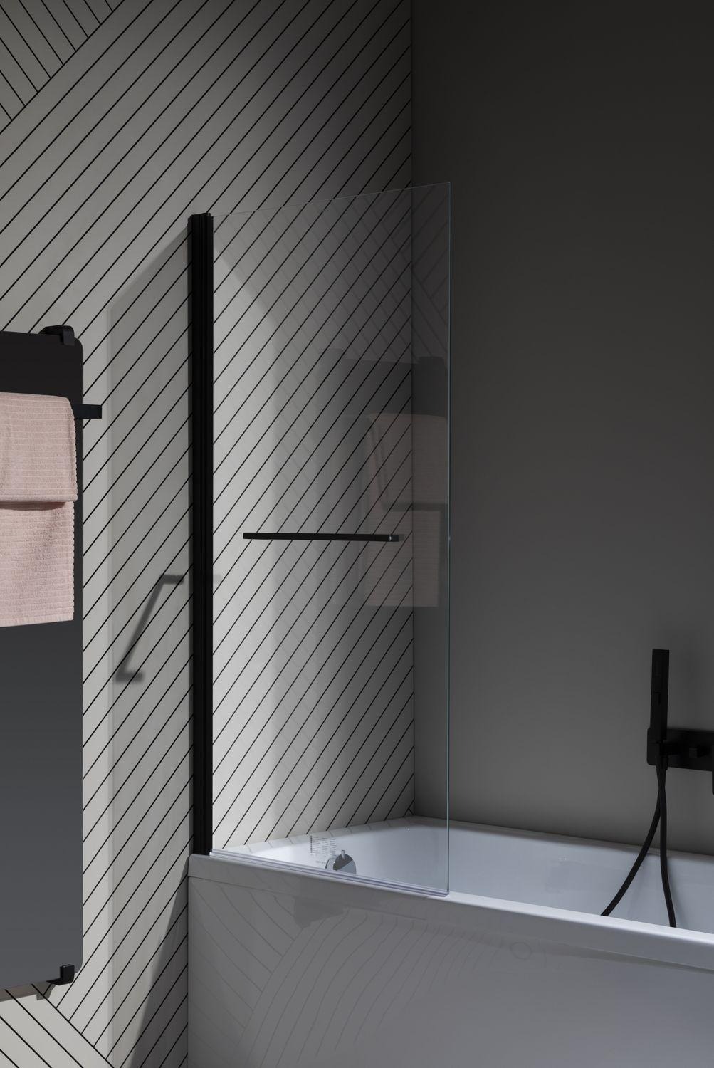 Шторка для ванны Allen Brau Priority 800х1500 мм 3.31022.BBA, распашная, стекло прозрачное 6 мм, профиль чёрный брашированный.