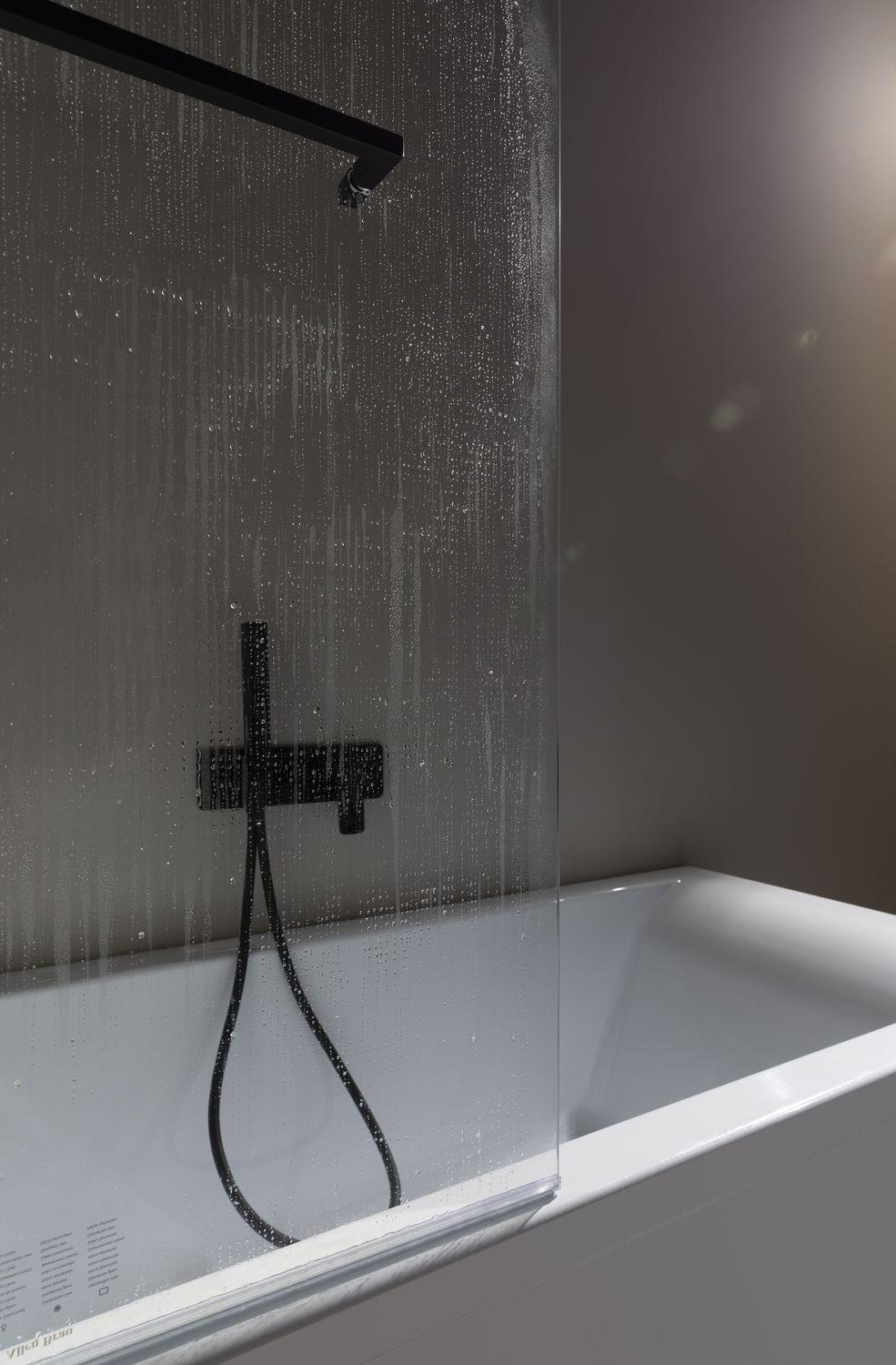 - Поверхность стекла обработана невидимым невооруженным глазом полимерным защитным слоем EasyClean, который препятствует образованию подтеков и надолго оставляет шторку чистой, к тому же, облегчает приведение стеклянной поверхности в порядок.