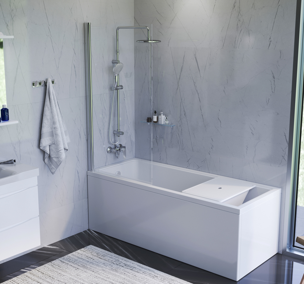 Шторка на борт ванны Gem выполнена в соответствующем всей коллекции дизайне: чистые грани четкие формы и безупречный стиль.Поворотная конструкция может менять свое положение. Устанавливается на любые ванны бренда.Закаленное ударопрочное стекло толщиной 6 мм встроено в алюминиевый влагостойкий профиль что гарантирует долгую службу продукта.На 100% защищает от разбрызгивания и предотвращает скопление воды за пределами ванны. Идеальное хромовое покрытие придает продукту стильный внешний вид а также защищает от коррозии.