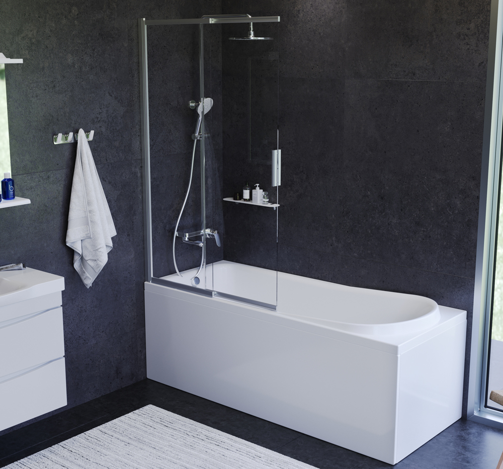Впервые в доступном ценовом сегменте - премиальный дизайн Dynamic Organic. Закаленное ударопрочное стекло толщиной 4 мм встроено в алюминиевый влагостойкий профиль что гарантирует долгую службу продукта. Душевая дверь на 100% защищает от разбрызгивания и предотвращает скопление воды за пределами ванны. Предусмотрена возможность регулировать размер и положение шторы для максимального удобства использования: - раздвижная с поворотом на 180 градусов относительно стены. - изменяемая длина от 600 до 1000 мм. Идеальное хромовое покрытие придает продукту стильный внешний вид а также защищает от коррозии. Перегородка универсальна и устанавливается на любую из ванн бренда.