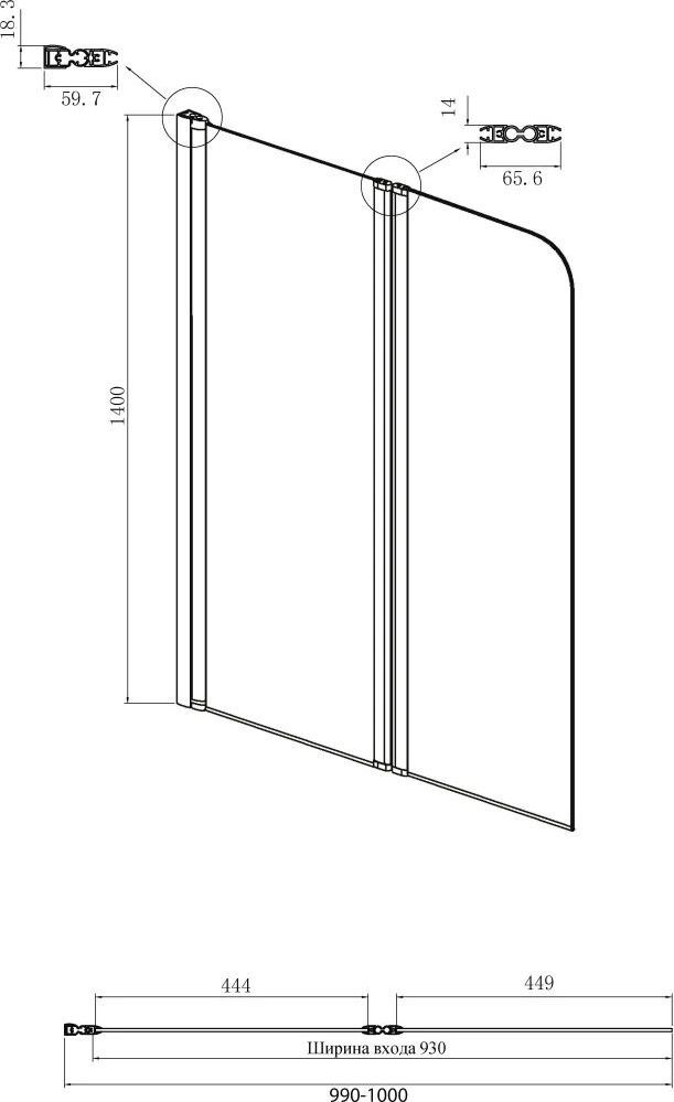 - Тип: шторка на ванну