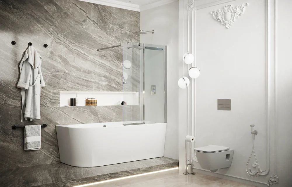 Шторка для ванны Ambassador Bath Screens, размер 1100х1400 мм, профиль хром, стекло прозрачное 6 мм.