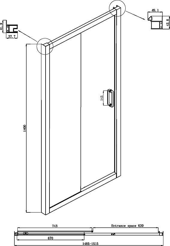 - Дверь: одна раздвижная дверь, одно неподвижное стекло