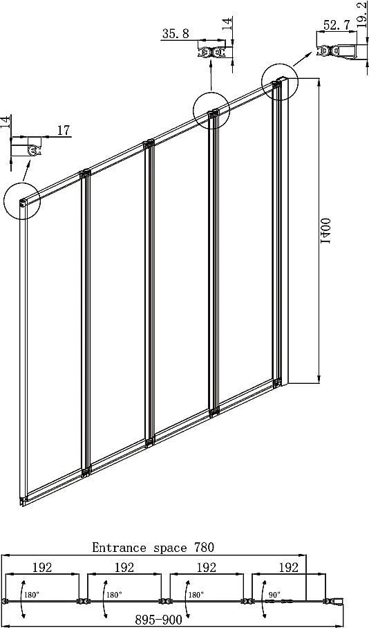- Дверь: четыре складывающиеся во внутрь секции (гармошкой)