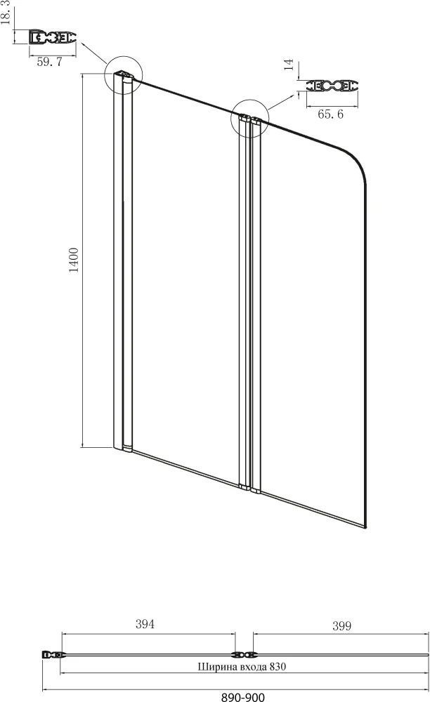 - Тип: шторка на ванну
