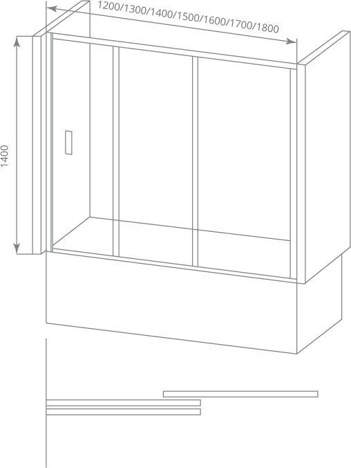 Шторка для ванны Bas Screen WTW-160-C-CH, размер 1600х1400 мм. Профиль хром, стекло прозрачное 4 мм.
